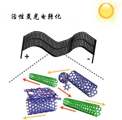 活性炭材料是光伏太陽能電池的優(yōu)秀候選者:自然界中含量高,具有高光吸收性,并保持優(yōu)異的熱穩(wěn)定性和光穩(wěn)定性。其靈感來源于一般的碳納米材料可以是金屬或半導體,只需要一種金屬和一種半導體來制造太陽能電池。