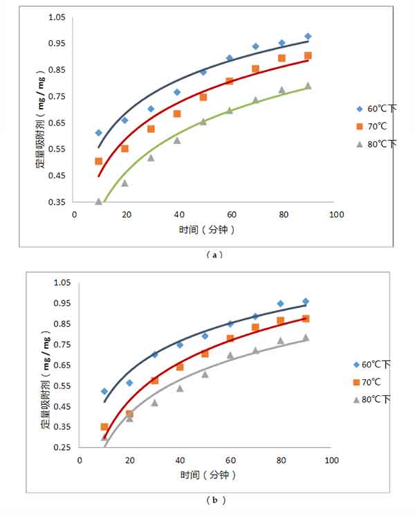 圖2。(a)使用來自棉花的活性炭脫色棉籽油的吸附動力學(xué)(b )使用來自棉籽皮的活性炭對棉籽油脫色的吸附動力學(xué)。